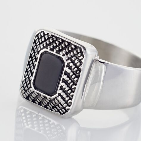 Bague Jourdan Louka Acier Argenté Onyx - Bagues solitaires Homme | Histoire d’Or