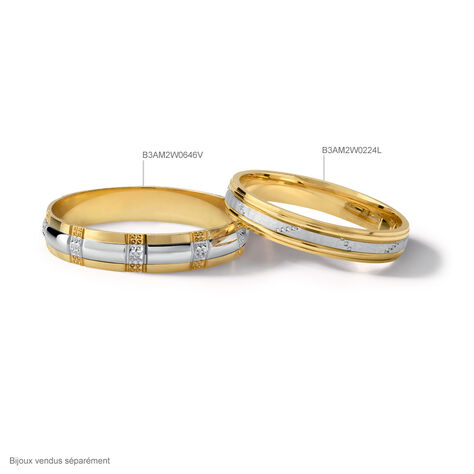 Alliance Strie Fantaisie Demi Jonc Classique Or Bicolore - Alliances Unisex | Histoire d’Or