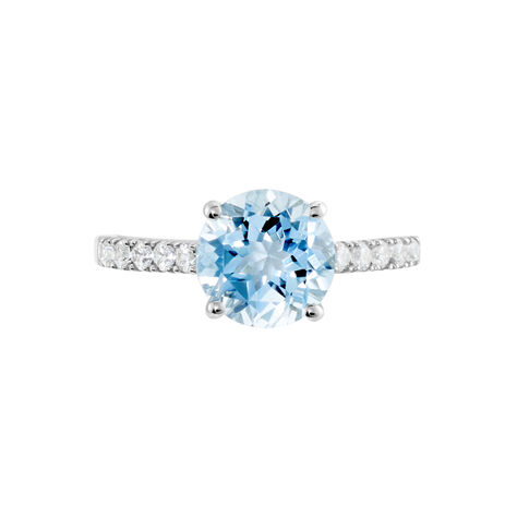 Bague Solitaire Tahyss Or Blanc Topaze Et Oxyde De Zirconium