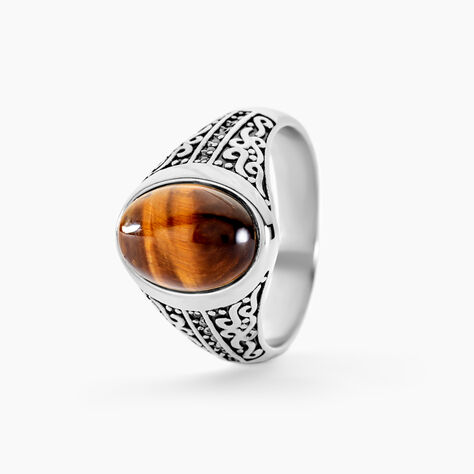 Chevalière Acier Vieilli Keegan œil De Tigre - Bagues solitaires Homme | Histoire d’Or