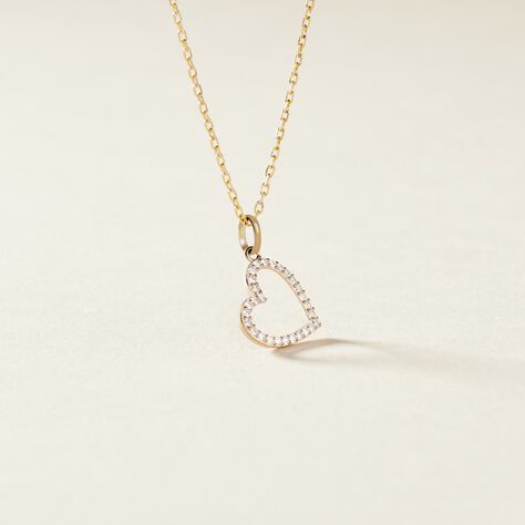 Pendentif Coeur Penche Or Jaune Oxyde De Zirconium