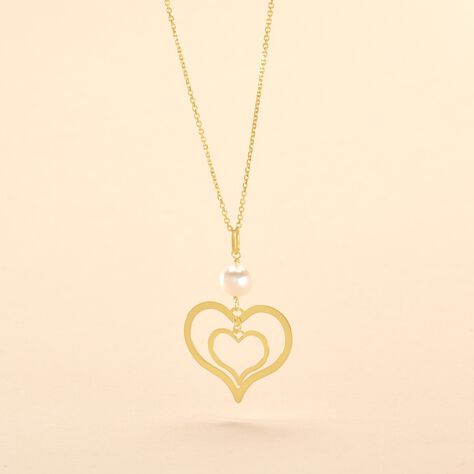 Collier Double Ajoure Or Jaune Perle De Culture - 40 cm