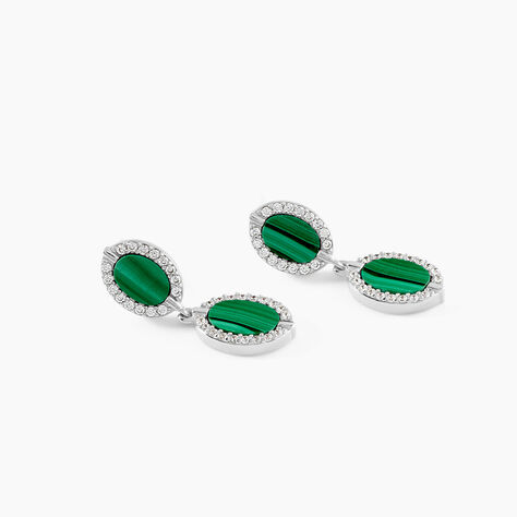 Boucles D'Oreilles Pendantes Margot Argent Blanc Malachite Oxyde De Zirconium - Boucles d'oreilles pendantes Femme | Histoire d’Or