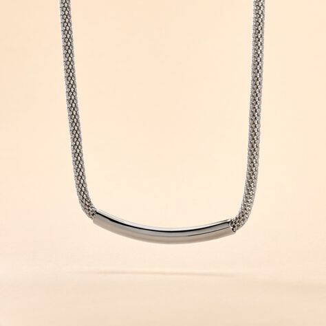 Collier Amadeo Maille Popcorn Acier Blanc - 45 cm