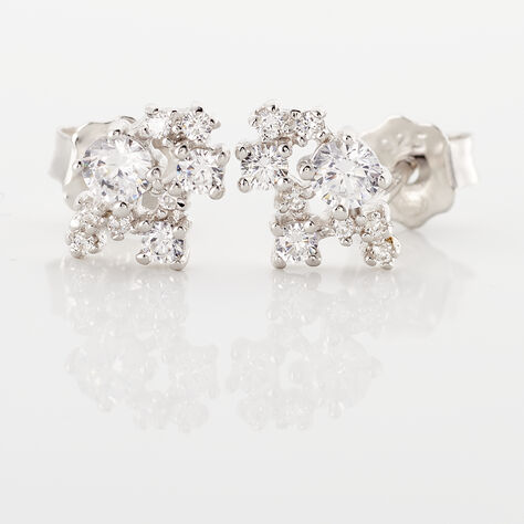 Boucles D'oreilles Puces Guenolee Argent Blanc Oxyde De Zirconium - Boucles d'oreilles fantaisie Femme | Histoire d’Or