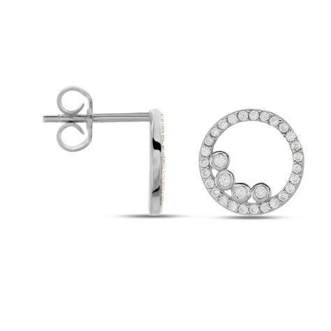 Boucles D'oreilles Puces Argent Blanc Ursine Oxydes De Zirconium - Boucles d'oreilles fantaisie Femme | Histoire d’Or