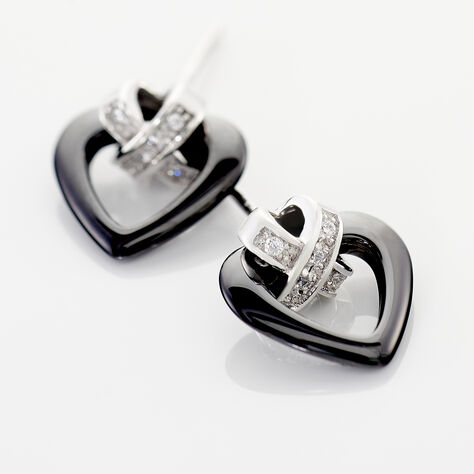 Boucles D'oreilles Pendantes Alena Argent Blanc Céramique Et Oxyde - Boucles d'oreilles fantaisie Femme | Histoire d’Or