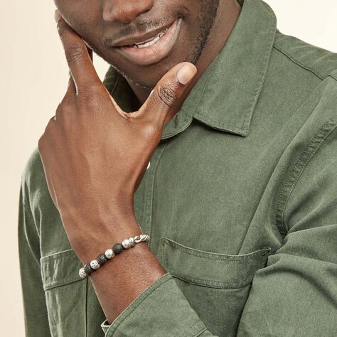Bracelet Gulustan Acier Gris Vieilli Pierres De Lave - Bracelets Homme | Histoire d’Or