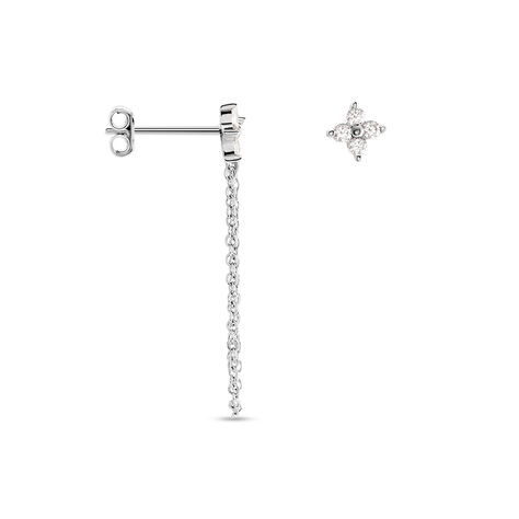 Boucles D'oreilles Dépareillées June Argent Blanc Oxyde De Zirconium