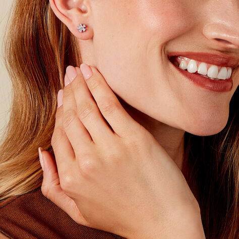 Boucles D'oreilles Puces Argent Blanc Sylvan Oxydes De Zirconium - Boucles d'oreilles fantaisie Femme | Histoire d’Or