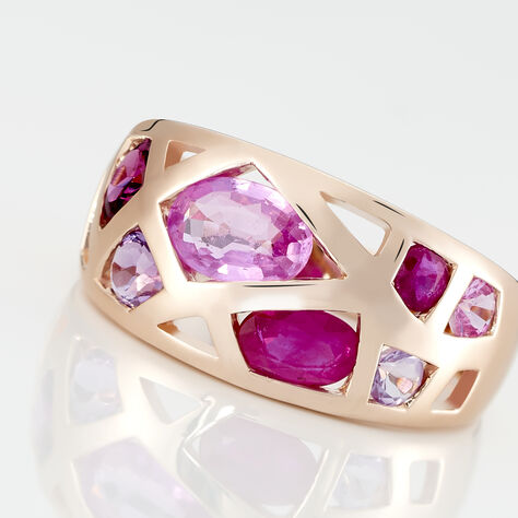Bague Mosaique Or Rose Amethyste Et Rhodolite Et Saphir
