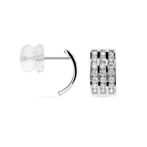 Boucles D'oreilles Puces Horcia Or Blanc Oxyde De Zirconium - Clous d'oreilles Femme | Histoire d’Or