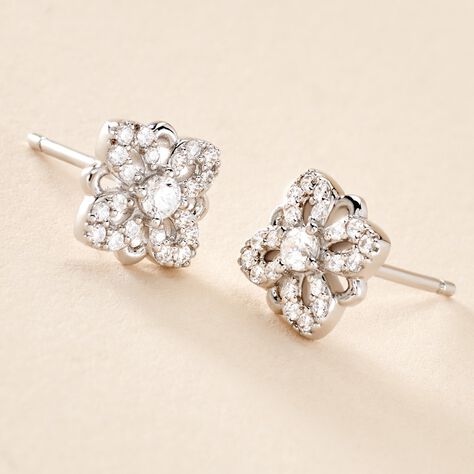 Boucles D'oreilles Puces Flamen Argent Blanc Oxyde De Zirconium - Boucles d'oreilles fantaisie Femme | Histoire d’Or