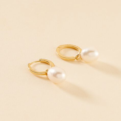 Boucles D'oreilles Pendantes Campanule Or Jaune Perle De Culture