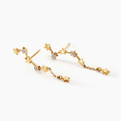 Boucles D'oreilles Pendantes Orion Or Jaune Oxyde De Zirconium