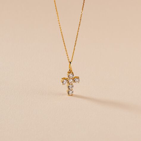 Pendentif Crocetta Or Jaune Oxyde De Zirconium - Pendentifs Baptême Famille | Histoire d’Or