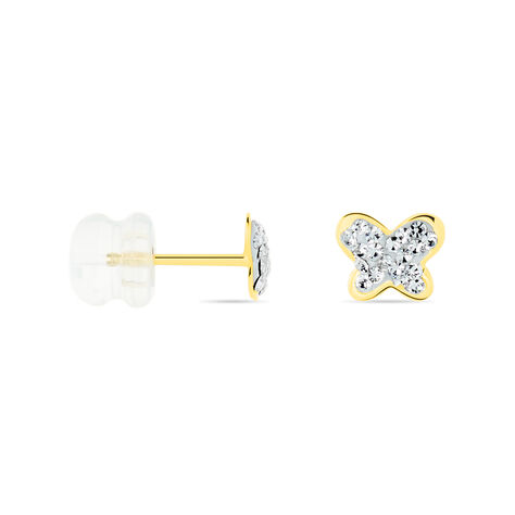 Boucles D'oreilles Puces Or Jaune Cercis Strass