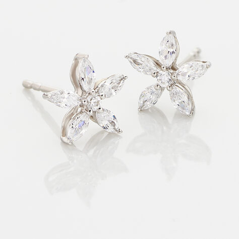 Boucles D'oreilles Puces Horcia Or Blanc Oxyde De Zirconium
