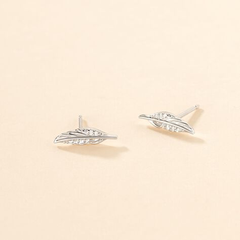Boucles D'oreilles Puces Feath Argent Blanc Oxyde De Zirconium