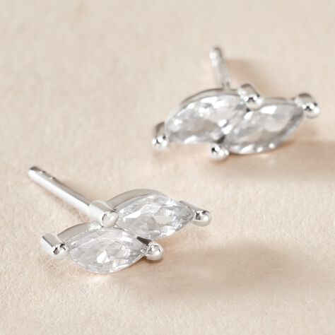 Boucles D'oreilles Puces Feath Argent Blanc Oxyde De Zirconium - Boucles d'oreilles fantaisie Femme | Histoire d’Or
