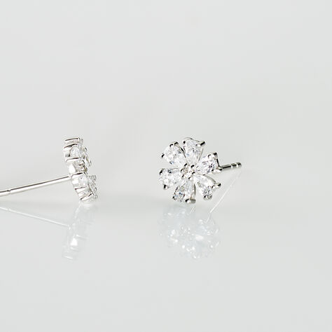 Boucles D'oreilles Puces Philine Fleur Or Blanc Oxyde De Zirconium