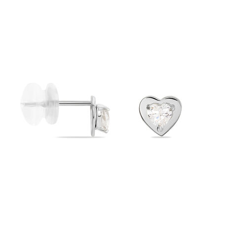 Boucles D'oreilles Puces Dot Coeur Plein Or Blanc Oxyde De Zirconium - Clous d'oreilles Famille | Histoire d’Or