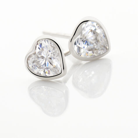 Boucles D'oreilles Puces Coeur Serti Clos Or Blanc Oxyde De Zirconium