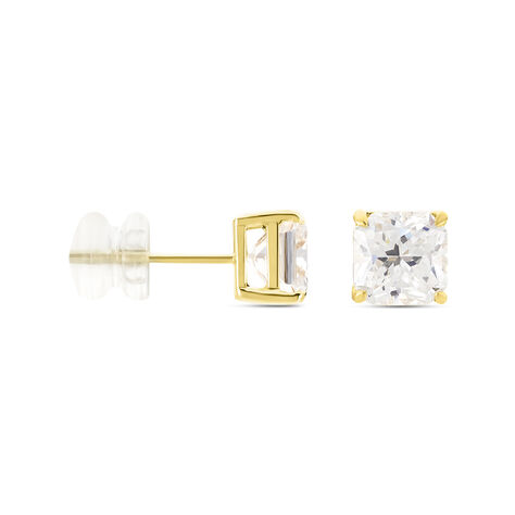 Boucles D'oreilles Puces Doreen Carre Or Jaune Oxyde De Zirconium