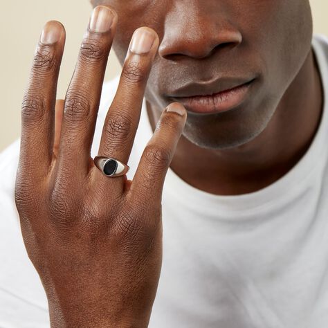 Chevalière Kaden Argent Blanc Oxyde De Zirconium Noir - Chevalières Homme | Histoire d’Or