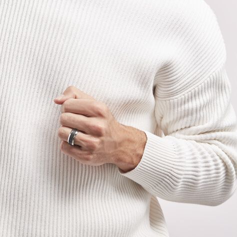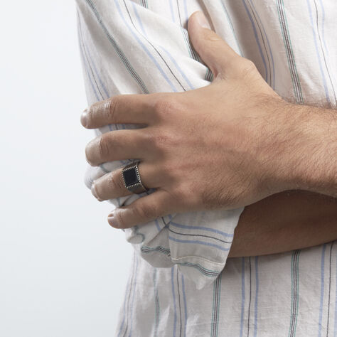 Bague Achille Acier Blanc Oxyde Noir - Bagues avec pierre Homme | Histoire d’Or
