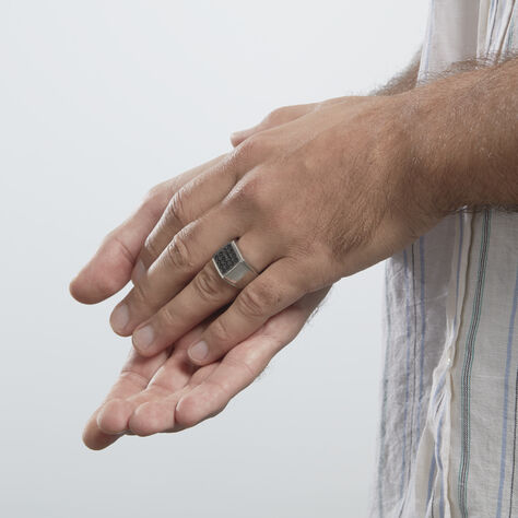 Bague Chevalière Acier Vieillit Teodor Oxydes De Zirconium - Bagues avec pierre Homme | Histoire d’Or