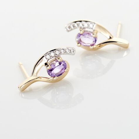 Boucles D'oreilles Sagesse Or Jaune Amethyste Oxyde - Clous d'oreilles Femme | Histoire d’Or