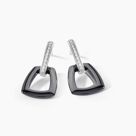 Boucles D'oreilles Pendantes Elodie Argent Blanc Oxyde Et Céramique - Boucles d'oreilles fantaisie Femme | Histoire d’Or