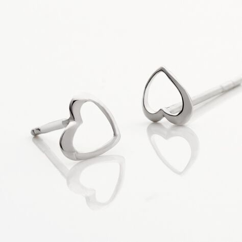 Boucles D'oreilles Puces Anne-maudae Coeurs Or Blanc - Clous d'oreilles Femme | Histoire d’Or
