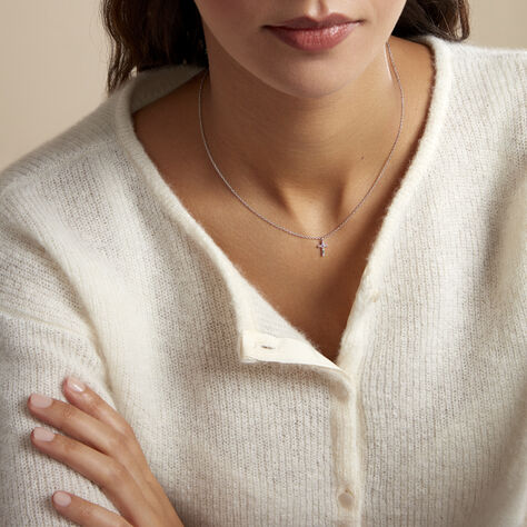Collier Suzon Argent Rose Oxyde De Zirconium - 44 cm