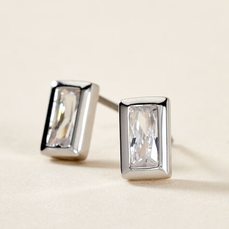 Boucles D'oreilles Puces Perta Argent Blanc Oxyde De Zirconium