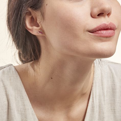 Boucles D'oreilles Puces Lydia Or Bicolore Rubis - Clous d'oreilles Femme | Histoire d’Or