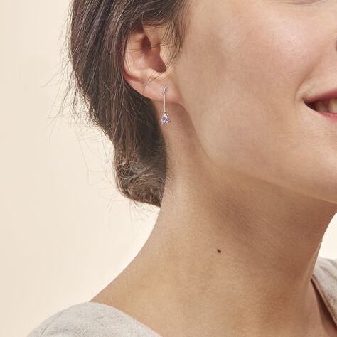Boucles D'oreilles Pendantes Goutte Or Blanc Amethyste - Boucles d'oreilles pendantes Femme | Histoire d’Or
