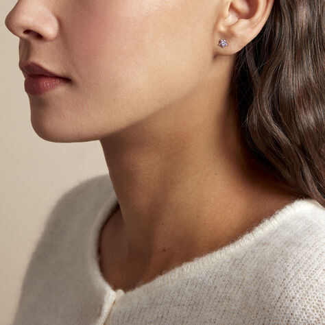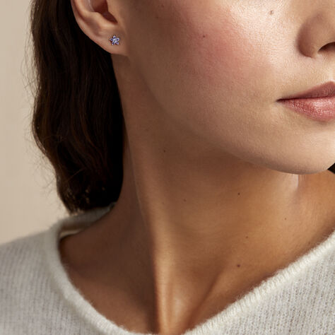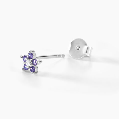 Boucles D'oreilles Puces Purple Bloom Argent Blanc Oxyde De Zirconium - Boucles d'oreilles fantaisie Femme | Histoire d’Or