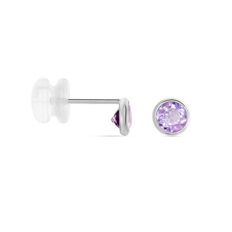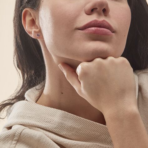 Boucles D'oreilles Puces Elea Serti Griffes 3 Or Blanc Amethyste - Clous d'oreilles Femme | Histoire d’Or