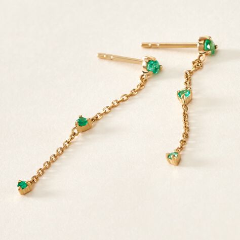Boucles D'oreilles Or Jaune Emeraude Diamants