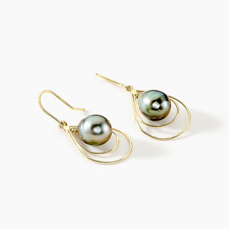 Boucles D'oreilles Pendantes Semi-baroque Or Jaune Perle De Tahiti - Boucles d'oreilles pendantes Femme | Histoire d’Or