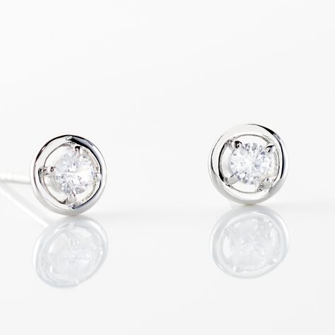 Boucles D'oreilles Puces Lorena Argent Blanc Oxyde De Zirconium - Boucles d'oreilles fantaisie Femme | Histoire d’Or
