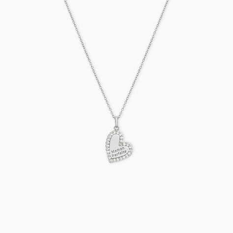 Collier Coeur Serti Clos Or Blanc Oxyde De Zirconium - Colliers Femme | Histoire d’Or