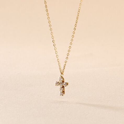 Collier Arene Croix Or Jaune Oxyde De Zirconium - 45 cm