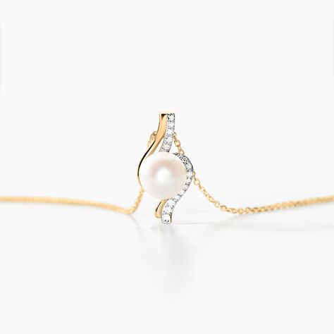 Collier Grazilla Or Bicolore Perle De Culture Et Diamant - 42 cm