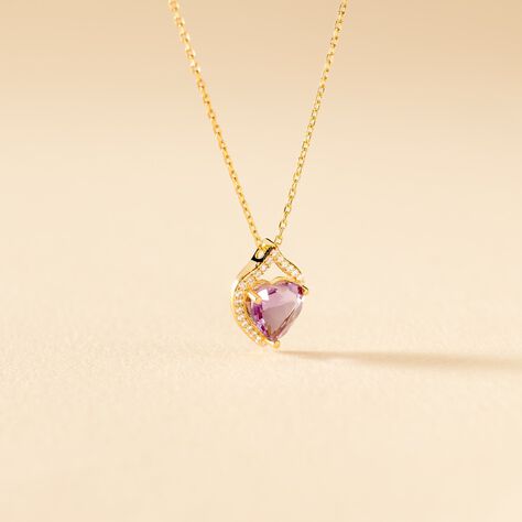 Collier Rosaline Or Jaune Amethyste Et Oxyde De Zirconium - 43 cm