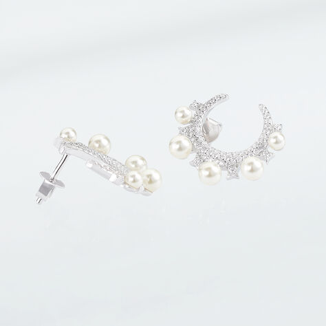 Boucles D'oreilles Puces Moon Argent Perle D'imitation Et Oxyde - Clous d'oreilles Femme | Histoire d’Or