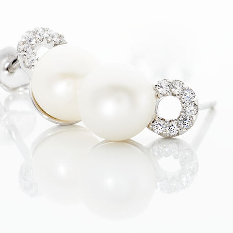 Boucles D'oreilles Pendantes Lilio Argent  Perle De Culture Et Oxyde - Boucles d'oreilles fantaisie Femme | Histoire d’Or
