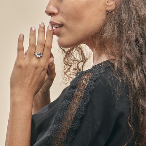 Bague Solitaire Or Blanc Crista Saphir Diamants - Bagues solitaires Femme | Histoire d’Or